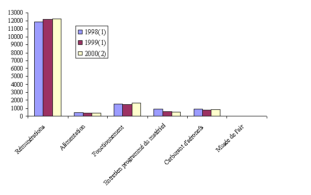 La professionnalisation a aussi des conséquences sur les postes alimentation, fonctionnement et entretien programmé du matériel. Cependant, au contraire de lan dernier, elle na pas pour conséquence une diminution mécanique de leur montant. En effet, la déflation dappelés est beaucoup moins importante que lan dernier, de lordre de la moitié. De plus, lannuité 2000 est loccasion dajustements structurels. Les crédits dalimentation diminuent logiquement en conformité avec la déflation de leffectif dappelés ; ils perdent 33,2 millions de francs soit 8,21 % de leur montant. Les crédits de fonctionnement sont au contraire en hausse, de 182,8 millions de francs, soit 12,65 %. Les ajustements à la baisse dus à la réduction du format, de 35,9 millions de francs, sont en effet compensés par un accroissement de crédits de 218,7 millions de francs. Ceux-ci recouvrent dabord 148,5 millions de francs de transferts ; il sagit dabord de 80 millions de francs de transferts proprement dits, 50 millions de francs en provenance des crédits dentretien programmé du matériel (EPM), et 30 millions de francs de crédits dhabillement, qui figuraient, eux, au titre V. Peuvent aussi y être assimilés 68,5 millions de francs de crédits destinés à des actions de sous-traitance, pour lesquels un article nouveau, larticle 94, est créé au chapitre 34-03, qui peuvent apparaître comme des transferts de crédits de personnel dans la mesure où ils sont gagés par la suppression réversible de 336 postes de personnels civils, 27 postes de sous-officiers et 30 postes dappelés. Enfin, 70 millions de francs apparaissent effectivement comme des crédits nouveaux ; 15,6 millions de francs sont accordés pour le recrutement et surtout la reconversion des militaires techniciens de lair, 13,7 millions de francs au titre des surcoûts causés par la transition et enfin 41,3 millions de francs au titre du « rebasage » de la dotation de fonctionnement de lArmée de l'air. Votre rapporteur avait en effet déploré, lan dernier, que lArmée de l'air, qui maîtrisait désormais bien son budget, doive continuer à répercuter chaque année un report de charges qui la gênait dans la gestion de son titre III, et qui nétait apuré quen collectif budgétaire de fin dannée. Il se réjouit quà loccasion du présent projet de loi de finances, il soit mis fin à cette situation. Les crédits dentretien programmé du matériel diminuent une fois de plus fortement, de 74,9 millions de francs. Ils subissent le mouvement inverse des crédits de fonctionnement. En effet, aux 29,7 millions de francs de suppressions de crédits dus à la déflation des effectifs sajoutent 50 millions de francs de crédits transférés audit fonctionnement courant. Par ailleurs, 4,7 millions de francs viennent compenser la hausse des prix. Quant au poste « carburant daéronef », on sait quil obéit à une logique spécifique puisque le coût du carburéacteur dépend du cours du pétrole en dollars et du taux de change du dollar en francs : le caractère totalement erratique des fluctuations qui en ont résulté cette année a amené à retenir pour base de calcul un tarif proche de celui de cette année. De ce fait, les mouvements contraires liés à lactualisation des prix (31,1 millions de francs de plus), au rebasage de la dotation (16,9 millions de francs de plus) et aux ajustements en application de la loi de programmation militaire (46,1 millions de francs de moins) aboutissent à une quasi-reconduction de la dotation qui sera analysée en détail plus avant. En conclusion, le budget de fonctionnement de lArmée de l'air pour 2000 apparaît comme la mise en uvre correcte de la quatrième annuité de la professionnalisation. TITRE III AIR : (en millions de francs)