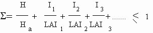 - dans le cas où l’incorporation par inhalation domine (par exemple dans le cas des mineurs d’uranium), on peut remplacer l’activité incorporée annuellement par Ci, concentration moyenne dans l’air au cours de l’année et la, limite annuelle d’incorporation LAIi par la limite dérivée de concentration annuelle LDCAi - enfin dans le cas où il y a superposition d’une dose interne et d’une dose externe, avec H équivalent de dose maximal reçu en profondeur et Ha limite annuelle ou trimestrielle, la somme des rapports ci-dessous doit être inférieure à 1 :