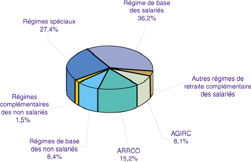 Source : commission des comptes de la sécurité sociale Pour l'exercice 1998, le montant des recettes s'est élevé à 385 386 MF (+ 5,2 %) et celui des dépenses à 385 610 MF (+3,8 %). Pour l'exercice 1999, les prévisions montrent des recettes s'élevant à 404 700 MF (+ 3,7 %) et des dépenses de 400 304 MF (+ 3,8 %). Pour l'exercice 2000, ces montants seraient de 416 019 MF (+ 2,8 %) et 413 356 MF (+ 2,3 %). La CNAVTS bénéficie donc pour cette année d'un surplus de cotisations. Elle enregistre par ailleurs, un versement du FSV supérieur de 238 MF à celui retenu lors de la réunion de la commission des comptes de la sécurité sociale de mai 1999 (102 MF au titre de la validation des périodes de chômage, et 136 MF au titre du financement du minimum vieillesse) ; la somme totale versée à la CNAVTS par le FSV s'élevant à 64,2 MdF. L'impact estimé de la revalorisation de 1,2 % des pensions de retraite par la loi de financement pour 1999 est de 4,05 MdF. Cette prévision doit être tempérée par l'estimation des effets de l'application des mesures du présent projet de loi de financement qui devrait grever le solde de 950 MF au titre du « coup de pouce » de 0,3 % donné aux pensions par l'article 11 du projet et de 2 900 MF, à titre de provision pour acompte sur le versement au fonds de réserve pour les retraites prévu à l'article 10 du présent projet. I.- BILAN ET PERSPECTIVES DU SYSTÈME DE RETRAITES FRANÇAIS L'ordonnance du 19 octobre 1945 institue un régime général au bénéfice de l'ensemble des travailleurs salariés autres que ceux de l'agriculture. Elle institue le système par répartition et maintient les régimes spéciaux antérieurement créés. Dès 1946 le principe d'un régime unique est abandonné de fait et le décret du 8 juin 1946 énumère les régimes dont l'autonomie est maintenue en raison de l'attachement de leurs ressortissants à des avantages considérés comme acquis. En 1948 la généralisation de l'assurance vieillesse à l'ensemble de la population rencontrant l'hostilité des non-salariés, les régimes particuliers et autonomes de retraites propres aux diverses catégories concernées sont institués. Ainsi, la loi du 17 janvier 1948 crée des régimes d'assurance répartis en quatre organisations autonomes : professions industrielles et commerciales, professions artisanales, professions libérales, puis, par la loi du 10 juillet 1952, professions agricoles. Par ailleurs, est décidée l'attribution d'une allocation minimum à toute personne âgée dépourvue de ressources et ne relevant d'aucun régime vieillesse. La loi du 3 juillet 1972 pose le principe d'un alignement du régime d'assurance vieillesse des professions industrielles, commerciales et artisanales sur le régime d'assurance vieillesse du régime général. En effet, l'évolution démographique de ces régimes les avait conduits à de sérieuses difficultés. En 1973, une loi généralise le système de la retraite complémentaire à tous les régimes. Les lois de 1974 et de 1978 permettent la couverture des personnes qui ne bénéficiaient pas encore des prestations d'un régime d'assurance vieillesse (détenus, artistes, conjoints collaborateurs, femmes au foyer sous certaines conditions, etc.). C'est encore en 1974 que le principe d'une compensation entre régimes de base de sécurité sociale obligatoire est posé. En 1982, l'âge de la retraite est abaissé à 60 ans pour tous, à dater du 1er avril 1983 et sous réserve de conditions de durée d'assurance. La loi du 22 juillet 1993 porte création du fonds de solidarité vieillesse (FSV) et réforme le régime des retraites des salariés du secteur privé. Le FSV a pour mission le financement d'une partie des prestations non contributives et le remboursement de la dette sociale. Ses recettes s'élèvent aujourd'hui à 77 milliards de francs. Les autres réformes de cette loi ont porté sur : - le passage progressif de la durée d'assurance de 37 ans et demi à 40 ans (150 à 160 trimestres) pour obtenir une pension à taux plein avant 65 ans ; - le passage progressif des 10 aux 25 dernières meilleures années pour la base de calcul du salaire annuel moyen ; - la revalorisation des retraites selon l'indice des prix à la place de l'indexation sur les salaires. Actuellement, le rendement de la retraite des salariés du secteur privé se réduit du fait de l'application de cette réforme qui les incite à reporter leur départ en retraite à la date d'obtention du taux plein correspondant à terme à 40 annuités de cotisations (l'âge moyen d'entrée dans la vie active étant de 21,6 ans). Ainsi, si aujourd'hui, la totalité de la population active est couverte, l'autre ambition du législateur de 1945, celle d'un régime de retraite commun, est loin d'être satisfaite, comme l'illustre le tableau suivant : Répartition du total des dépenses vieillesse en 1997 ![]() (sources : site web l'Espace Retraite) On compte à ce jour en France 26 régimes de base d'assurance vieillesse dont 8 totalisent moins de 20 000 cotisants ou retraités titulaires de droits propres. Cependant, une évolution se distingue, plus de 90 régimes étant en voie d'extinction puisqu'ils ne reçoivent plus de cotisants et que les régimes de base des salariés agricoles, des artisans (CANCAVA), des industriels et commerçants (ORGANIC) sont désormais alignés sur le régime général. Depuis le 1er janvier 1999, l'ARRCO s'est transformée en un régime unique de retraite complémentaire, fédérant toutes les institutions de retraite complémentaire des salariés ; les institutions appliquent la même réglementation et toutes les particularités existantes, notamment en matière de majoration ont disparues. Si les « intentions » qui ont présidé aux travaux dirigés par M. Charpin sont critiquables, il n'en demeure pas moins que le diagnostic qu'ils délivrent revêtent un grand intérêt. Aussi, il ne s'agit nullement ici de « re