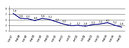 Evolution des deficits de transposition (en %)
