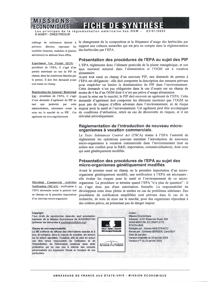 (publication de la mission économique