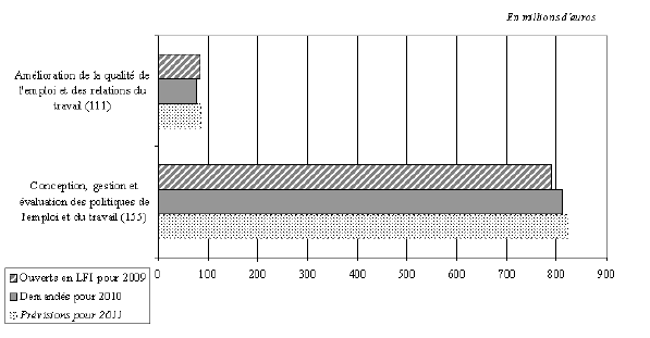 des programmes n° 111 et 155 de la mission « Travail et emploi » et prévisions pour 2011