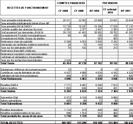 Pour 2011, la dotation de l’État au Fonds devrait s’établir à un niveau équivalent à celui de 2010, à hauteur de 50 millions d’euros : le tableau suivant retrace l’évolution des comptes prévisionnels de l’établissement depuis 2009.