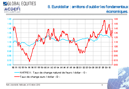 Le véritable enjeu du G 20, selon moi, concerne les parités de change. Je crois que nous pouvons atteindre une croissance de 2 % l’an prochain ; toutefois, avec un euro à 1,40 dollar, elle ne sera dans le meilleur des cas que de 1,50 %.