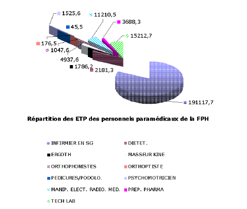 La répartition des effectifs paramédicaux en E.T.P. hors personnels infirmiers en soins généraux est la suivante (source SAE 2007)3: