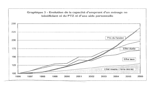 38 () Jean Bosvieux et Bernard Vorms, L’accession à quel prix ? La baisse des taux alourdit l’effort global des ménages, ANIL, Habitat actualité, Avril 2007. Chiffre obtenu sur la base d’une augmentation du revenu de 30 % sur la période et des prix de 137 %, le montant de l’acquisition passant de 100 000 euros à 237 000 euros.