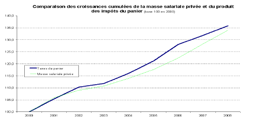 Enfin, la barémisation présente un risque financier qui a donné lieu à des positions discordantes entre la direction du budget et la direction de la sécurité sociale. La première s’est déclarée satisfaite que la compensation par un panier d’impôts et taxes affectés vaille pour solde de tout compte ; la seconde s’est inquiétée du risque que la barémisation ferait peser sur l’identification du manque à gagner pour la sécurité sociale chaque année, et donc sur la compensation de la perte de cotisations dans ce contexte nouveau. Nous reproduisons ces points de vue dans notre document. La direction du budget a réalisé, à notre demande, une petite étude destinée à établir rétrospectivement ce qui se serait produit si l’on avait adopté ce mode de compensation dans les années passées. Il apparaît que l’évolution de la masse salariale et celle du panier fiscal auraient été globalement comparables. En revanche, le niveau des exonérations a évolué, ce qui s’est traduit par une perte supplémentaire de cotisations et a nécessité des recettes supplémentaires issues des impôts affectés.