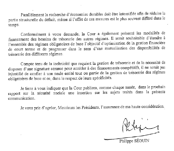 Le contingentement de ses avances par la Caisse des dépôts a fait que l’ACOSS, se trouvant confronté à un « plafond sous le plafond », a émis des billets de trésorerie. Cela s’était déjà produit et l’État a plusieurs fois acquis de tels titres de créance émis par l’agence – particulièrement en fin d’année, ce qui présente l’avantage de réduire la dette entendue au sens du traité de Maastricht. L’inquiétude de la Cour tient à ce que le marché des billets de trésorerie n’est pas extraordinairement étendu, ce qui revient à dire que l’État devra se porter acquéreur de ces papiers si d’autres ne le font pas – et qu’il lui faudra donc trouver 30 milliards d’euros pour cela.