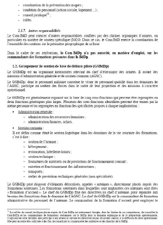 9 () Arrêté n° DEFD0831221A du 28 janvier 2009 portant organisation des bases de défense expérimentales et fixant les attributions des commandants des bases de défense expérimentales.