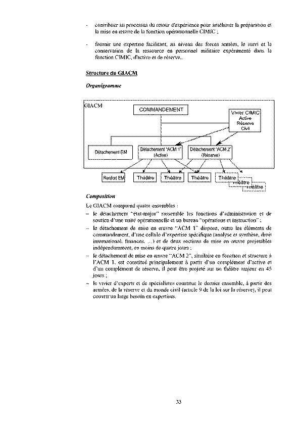 8 () Le GIACM n’est pas le seul pourvoyeur : il peut être fait appel autant que de besoin aux ressources internes aux armées compétentes dans le domaine de l’ACM.