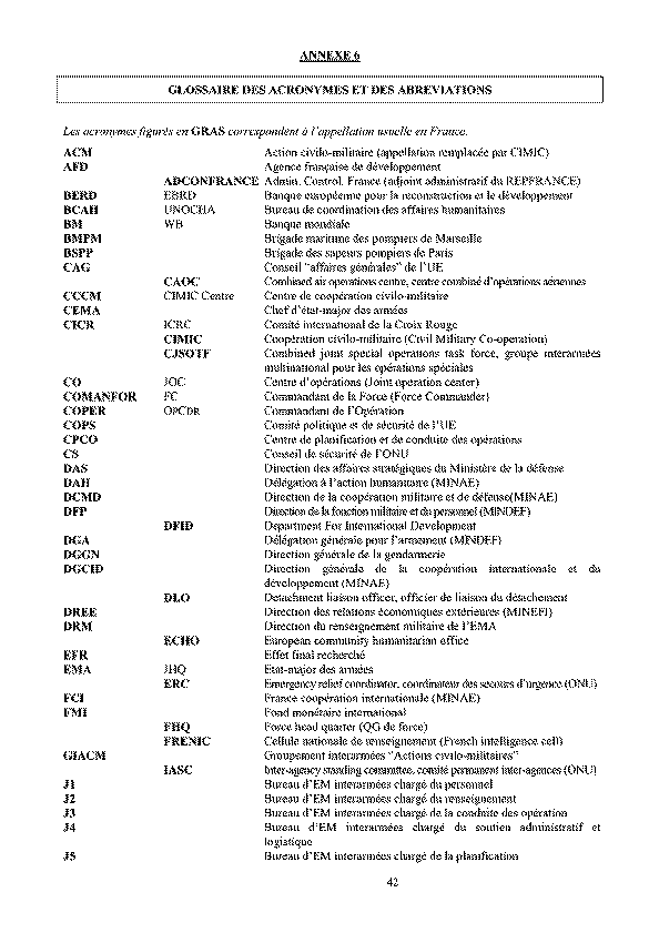 CONCEPT ET DOCTRINE INTERARMÉES DE LA COOPÉRATION CIVILO-MILITAIRE 109