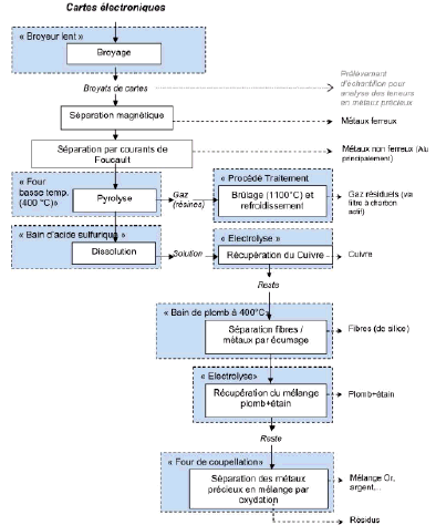 D’abord, à côté de la mine physique, la mine urbaine mérite d’être exploitée. Nos déchets constituent des réserves exploitables à proprement parler, que nous préférons ignorer la plupart du temps, à peine valoriser dans le meilleur des cas. L’industrie du recyclage des métaux rares et précieux existe, c’est indéniable, elle souffre néanmoins de certaines limites. Vos Rapporteurs sont ainsi convaincus de la nécessité d’orienter cette industrie vers des matériaux stratégiques pour l’instant délaissés faute de rentabilité économique immédiate. Par ailleurs, il est urgent de permettre à ces recycleurs de se développer, en mettant fin à la fuite de nos matières premières recyclables. Ceci relève d’une double exigence. En premier lieu, nous ne pouvons accepter que nos déchets, parfois dangereux, soient traités dans des conditions sociales et sanitaires désastreuses dans les pays du sud. En second lieu, il s’agit d’une fuite de valeur économique qui pourrait, maintenue sur notre territoire, créer de la richesse et des emplois.