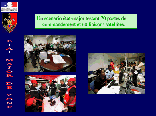 Nous avons 12 films avec un mime sur les accidents physiques de la vie quotidienne et sur les catastrophes majeures. Les catastrophes majeures que nous avons mises en priorité sont le tremblement de terre, les inondations et le nuage toxique. Ce sont les principales que nous pouvons avoir en France.