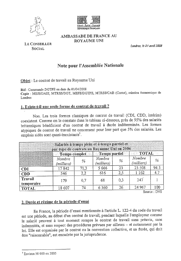 I.- FORMES DU CONTRAT DE TRAVAIL