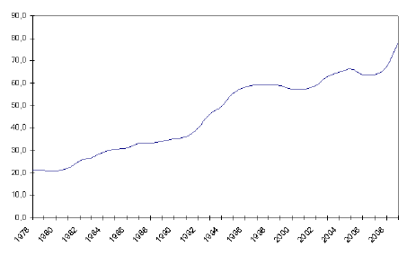 La crise économique et financière mondiale, déclenchée par la faillite de la banque Lehmann Brothers en septembre 2008, a imposé à la plupart des pays de l’OCDE de mener des plans de relance et de sauvetage du secteur financier considérables, entraînant de facto un creusement majeur de leur déficit budgétaire et un gonflement massif des dettes publiques entre 2008 et 2010.