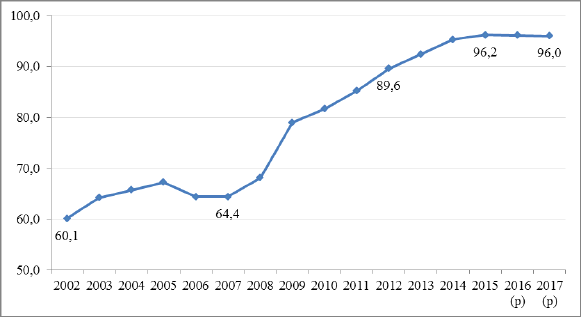Source : projets annuels de performances 2012, 2013, 2014, 2015, 2016 et 2017.