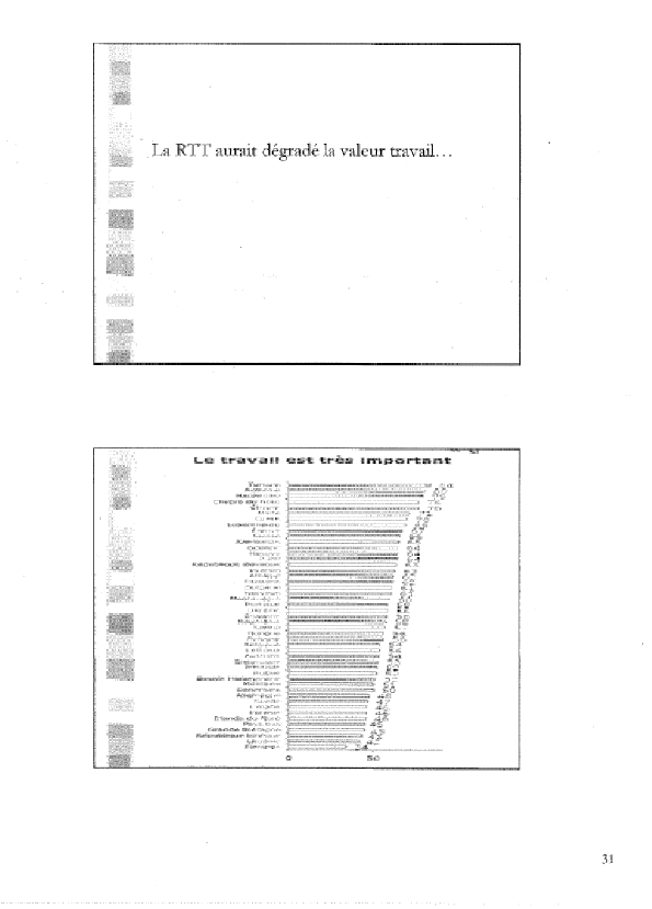 Il a enfin beaucoup été dit que la RTT aurait dégradé la valeur travail. Or l’European Values Study de 2010 révèle que pour 67% des Français le travail reste très important, ce qui place notre pays en tête du classement, avec la Grèce, le Luxembourg et la Suisse. Il n’y a eu, depuis le début des années quatre-vingt, aucune dégradation de cette appréciation.