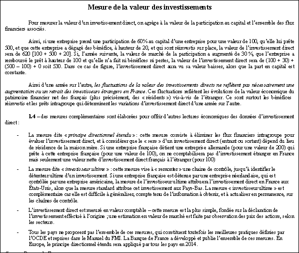 Une méthodologie harmonisée au plan mondial, sous l’égide du Fonds Monétaire International, avec l’appui notamment de l’OCDE, définit les mesures des investissements étrangers.