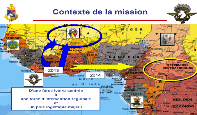 – le commandant de l’opération Sangaris, général Francisco Soriano, son état-major et les personnels de la force, à Bangui, dans ses faubourgs et à Bambari ;