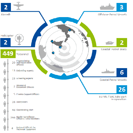 158 () Source : Communication conjointe de la Commission européenne et de la Haute représentante de l’Union européenne pour les affaires étrangères et la politique de sécurité au Parlement européen, au Conseil européen et au Conseil, intitulée « Migration sur la route de la Méditerranée centrale », 25 janvier 2017.
