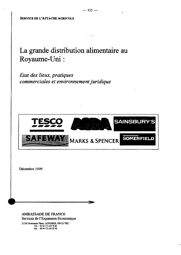 NOTE SUR LA GRANDE DISTRIBUTION ALIMENTAIRE ET LES PRATIQUES COMMERCIALES AU ROYAUME-UNI