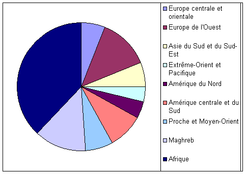 Source : Ministère des Affaires étrangères ![]() Effectifs des élèves, 268 établissements Année scolaire 1999/2000