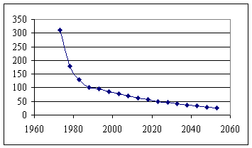 Au demeurant une installation photovoltaïque est modulaire. L'effet d'échelle joue donc très peu. Dès lors une installation de 100 kW coûtera quasiment 100 fois le prix d'une installation de 1 kW. En revanche, en ce qui concerne la fabrication des modules, l'effet de volume se traduit progressivement par une diminution des coûts, qui résulte de volumes de matières premières mises en _uvre plus importants, de l'apprentissage des procédés de fabrication et des actions de recherche et développement visant la diminution des quantités de matière première utilisée et l'amélioration de l'efficacité de la production, par exemple. Tableau 11 : Évolution du coût des panneaux photovoltaïques (source : CEA)