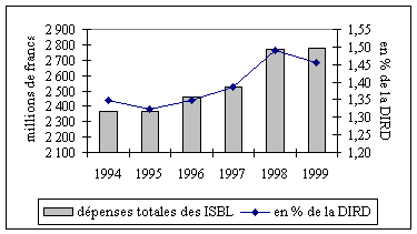 Toutefois, la part des applications passerait de 28 à 25 %, ce qui pose le problème de la programmation dans le temps de certaines missions spatiales. A cet égard, les missions relatives à Mars, et en particulier la mission Retour d'échantillons de Mars semblent reculer dans le temps en raison de problèmes de faisabilité qui incitent à la prudence et nécessitent de multiplier les étapes de validation des différentes technologies nécessaires. A l'inverse, la France met en avant le programme de GALILEO de positionnement par satellite. L'accélération du programme GALILEO et le ralentissement du programme Retour d'échantillon de Mars correspondent à l'évidence à la règle qui devrait s'imposer de plus en plus aux pouvoirs publics d'accorder une priorité aux programmes spatiaux dont les retombées sont les plus importantes sinon les plus rapides. Par ailleurs, dans la première partie, on a détaillé l'ampleur de la charge représentée par la participation française, via l'ESA, à la Station spatiale internationale. Si, pour des raisons juridiques mais également politiques et stratégiques, il ne saurait être question de remettre en cause la participation française, il semble nécessaire de revoir les conditions de son financement dont il est paradoxal qu'il n'incombe qu'au seul budget de la recherche. D'une manière plus générale, une clarification des circuits de financement des applications spatiales pourrait apparaître bienvenue. Il parait à cet égard contestable que l'on considère comme un TGE dans la nomenclature actuelle du ministère de la recherche une participation de 155 millions de francs par an aux sciences de la vie dans l'espace. A bien des égards, les applications spatiales constituent des outils banalisés dans de multiples activités de recherche ou pour de nombreux services à fort contenu technologique. En conséquence, le moment semble venu de ne plus imputer au seul budget de la recherche le coût d'applications intégrées dans la panoplie des moyens d'usage quotidien. ANNEXE 6 : Eléments sur le financement privé de la recherche Compte tenu du poids croissant de la recherche privée dans l'effort national de recherche, une action d'envergure en faveur de la recherche française peut aussi s'envisager sous l'angle d'une mobilisation de sources de financement complémentaires et doit sans doute comprendre également un volet d'une ambition accrue pour soutenir la recherche des entreprises. 1. Le rôle encore modeste des institutions sans but lucratif et des fondations dans le financement de la recherche La diversification des sources de financement de la recherche et des instituts de recherche est une évolution qui n'a sans doute pas encore trouvé sa pleine mesure dans notre pays. Les financements apportés par les institutions charitables jouent d'ores et déjà un rôle significatif dans la recherche. Ainsi, les ressources collectées par l'Association française contre les Myopathies, se sont élevées en 1999 à 622 millions de francs. En 1999, 468 millions de francs auront été collectés à l'occasion du Téléthon. Le montant total collecté lors des 13 premières années de cet événement atteint 4,3 milliards de francs. L'aide à la recherche représente environ les deux tiers des activités de l'AFM, le tiers restant étant dévolu à l'aide directe aux malades. En tout état de cause, il ne semble pas abusif de dire que l'AFM a contribué d'une manière décisive à l'accélération des travaux de séquençage du génome réalisés en France et plus généralement à l'essor de la génomique dans notre pays. Un autre élément doit être pris en compte dans l'effort de recherche, c'est l'intervention des institutions sans but lucratif. Figure 31 : Dépenses intérieures de recherche des institutions sans but lucratif (ISBL) - évolution en valeur absolue et en pourcentage de la DIRD 24